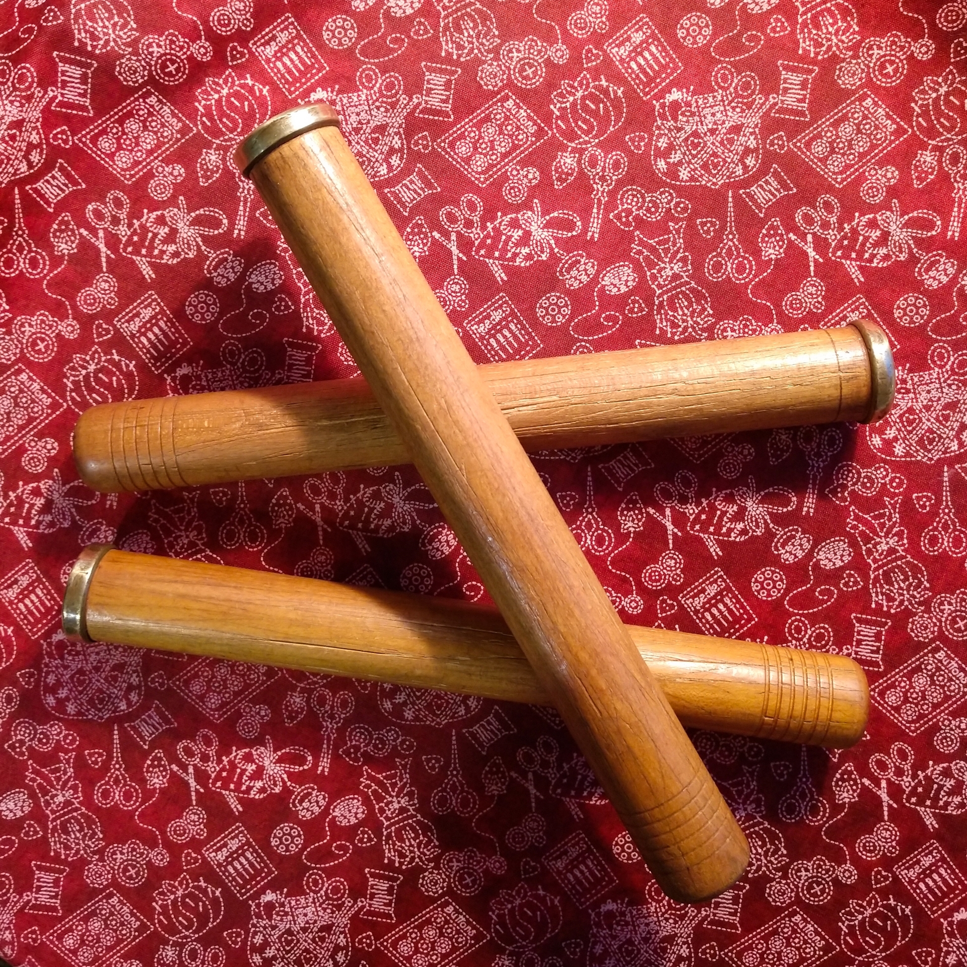 These bobbins were well used with a rich patina and show scoring on the bobbin barrels caused by knives cutting off the leftover yarn.....a sign of an authentic vintage bobbin!