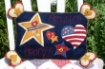 Celebrate American holidays with a festive and Patriotic Wool Appliqued Pillow featuring Heart shaped corners, a multitude of Patriotic shapes plus a cheerful America Hooray! Buttons and textured Embroidery stitches add to the interest of your pillow. Enjoy!