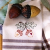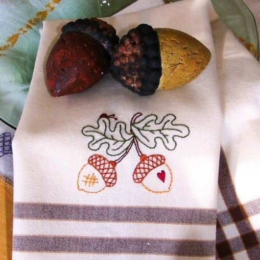 Stitch up a pair of pretty Autumn Acorns on a tea towel from Dunroven House. A wonderful towel just for "decoration" or to actually use - they do dry dishes! Quick to stitch for your kitchen or for a gift during the Thanksgiving holiday parties.