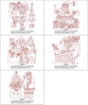 Five Santa Blocks make a charming Christmas Quilt. The RedWork Santa designs are embroidered with #8 Perle Cotton on “Aged to Perfection” cotton in a toasty shade called Pashmina. The look is rich and warm accented by Pinwheel Blocks in Tan,Red and Green holiday fabrics from our Just Be Claus Collection. Stitch a cozy Christmas Quilt for your home this year!!