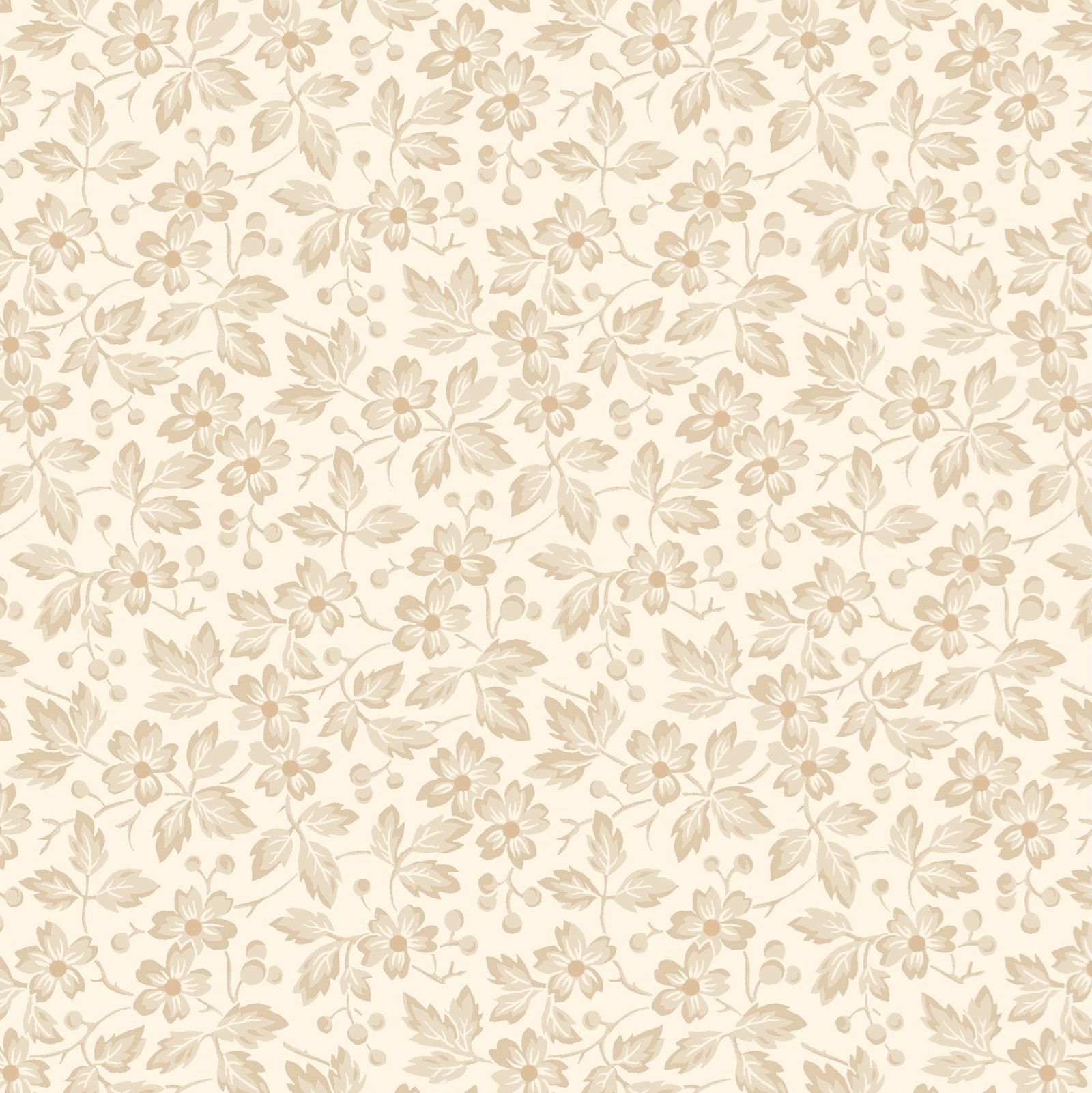 Small-scale Sprigs with Blossoms and Berries in a overall pattern printed on a tonal background. Great small print for piecing Embroidery and Quilting designs.