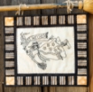 12” x 19” — Cream with Tan Dots — For Embroidery1/2 yard — Black Tie6” x 43” — Black & Tan Trimmed Stripe6” x 6 “ — Tea-dyed Geo Swirls