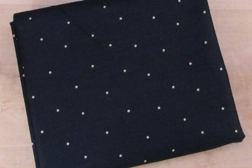 Black cotton with a silky smooth finish scattered with small tea-dyed colored polka-dots . A great fabric to add to your bold BlackWork designs.