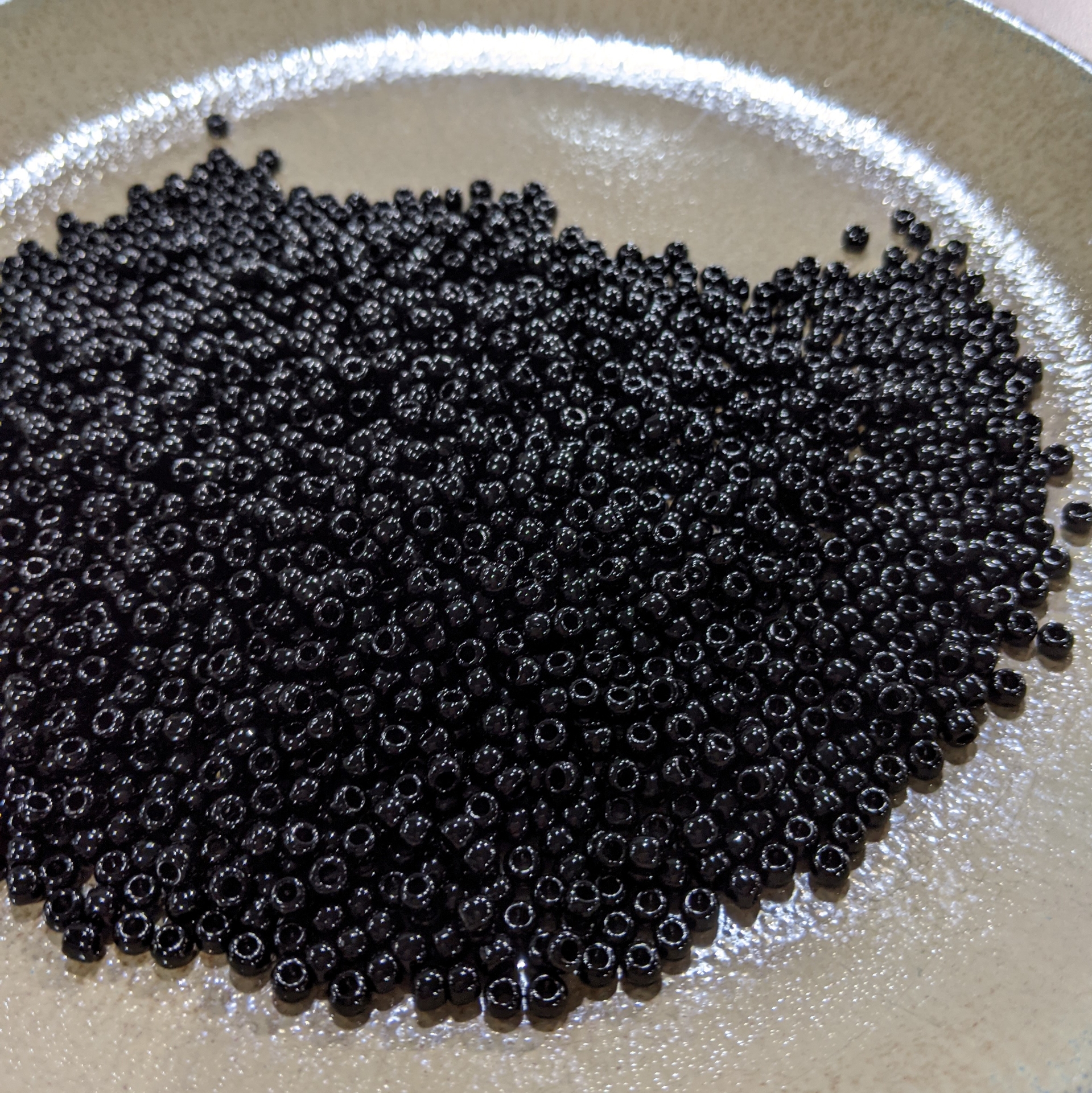 A deep ebony shade of black in a pretty glass bead to complement the our Black Presencia Perle Cotton we like to use in our BlackWork.Nice on wool projects too!