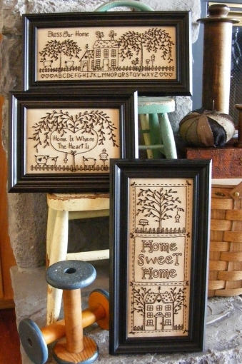 Machine Embroider 3 Dramatic BlackWork Home Blessing Samplers on Pashmina or Tea-dyed Aged to Perfection Cotton.