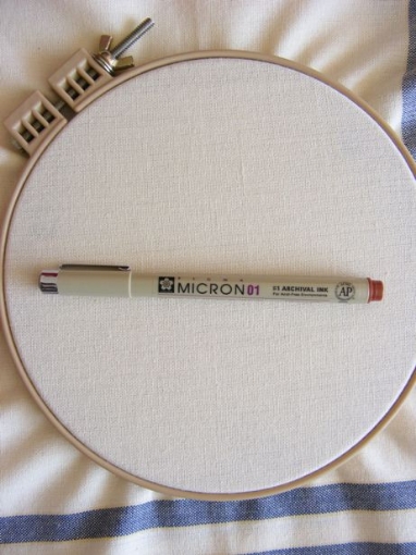 A Permanent brown ink pen to transfer your Embroidery designs to fabric. The drawn line is VERY thin and will be covered by your stitching. The ink is permanent and will NOT bleed when you launder your embroidery after the stitching is completed. Just tape your pattern on a light box (or tape in a bright window) and then tape your fabric over the pattern to secure. With your Pigma marker, draw the design directly onto the fabric. The pen will flow easily over our fabric, no need to press really hard.