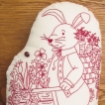 A Clever RedWork Bunny Doorstop Pushes His Cart Filled with Flowers for Spring and Easter. Let him Carefully hold your Door Open or let him join the Party Festivities and become the center of attention on your Table! Stitched In Cheerful RedWork Embroidery and Easily Finished. Fill with pillow filling and add a weight in the bottom (sand or crushed walnut shells) to keep Mr. Bunny standing tall. Of course Step-By-Step instructions included in your Pattern.