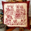 A pair of proud smiling Bunnies enjoy their delightful Garden filled with interesting Spring Flowers. This amusing pillow trio in RedWork will add to the fun of Spring decorating in your home. The Bunny Pair are not typical Easter Bunnies and are designed to show off in your Home ALL Spring Season!