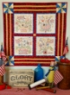 A Colorful Celebration of Americana Motifs in a Patriotic Stitchers’ Quilt for our Happy Patriotic Holidays. A rich and warm quilt finished with Fireworks, Sparklers & Pinwheel Cornerstones.