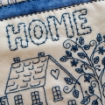Home is where your Heart is! Celebrate your HOME with a BlueWork pillow…..you can choose to finish as a Table Mat or WallHanging, too. A simple cottage with a picket fence, bird house, flowering tree and flowers plus a cute little Quilt Block Banner over the door to welcome friends and family. The 2 fabric sashing borders frame your Embroidered Home so effectively and Quick-toStitch and finish your design. A charming House Pillow to tuck in a favorite spot in your home!
