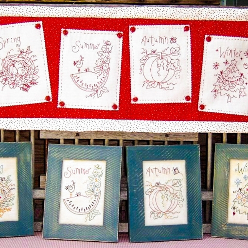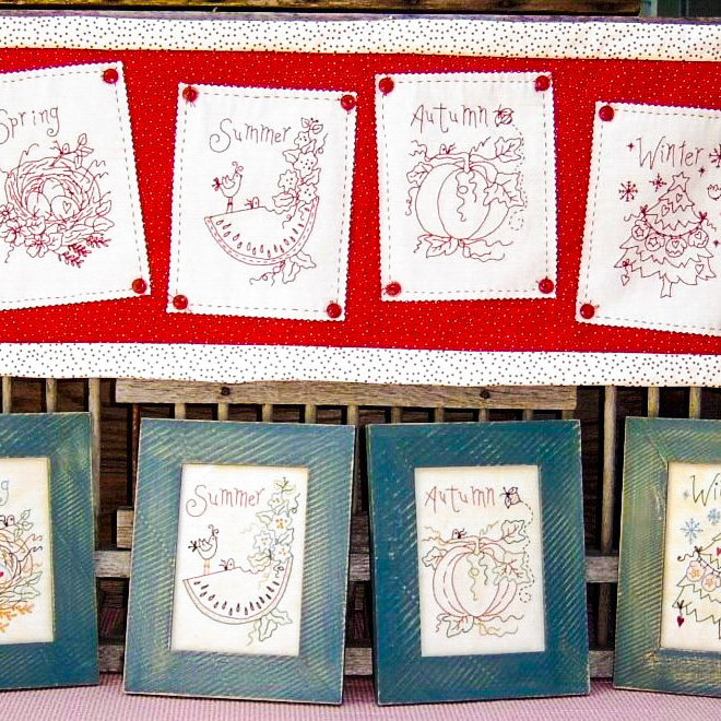 Celebrate each season with it’s own special redwork embroidery. Stitch them in cheerful colors of Perle Cotton and frame individually. Crisp red and white will make a great finish too! Stitch on Muslin or Cozy Cotton for a little more background texture.