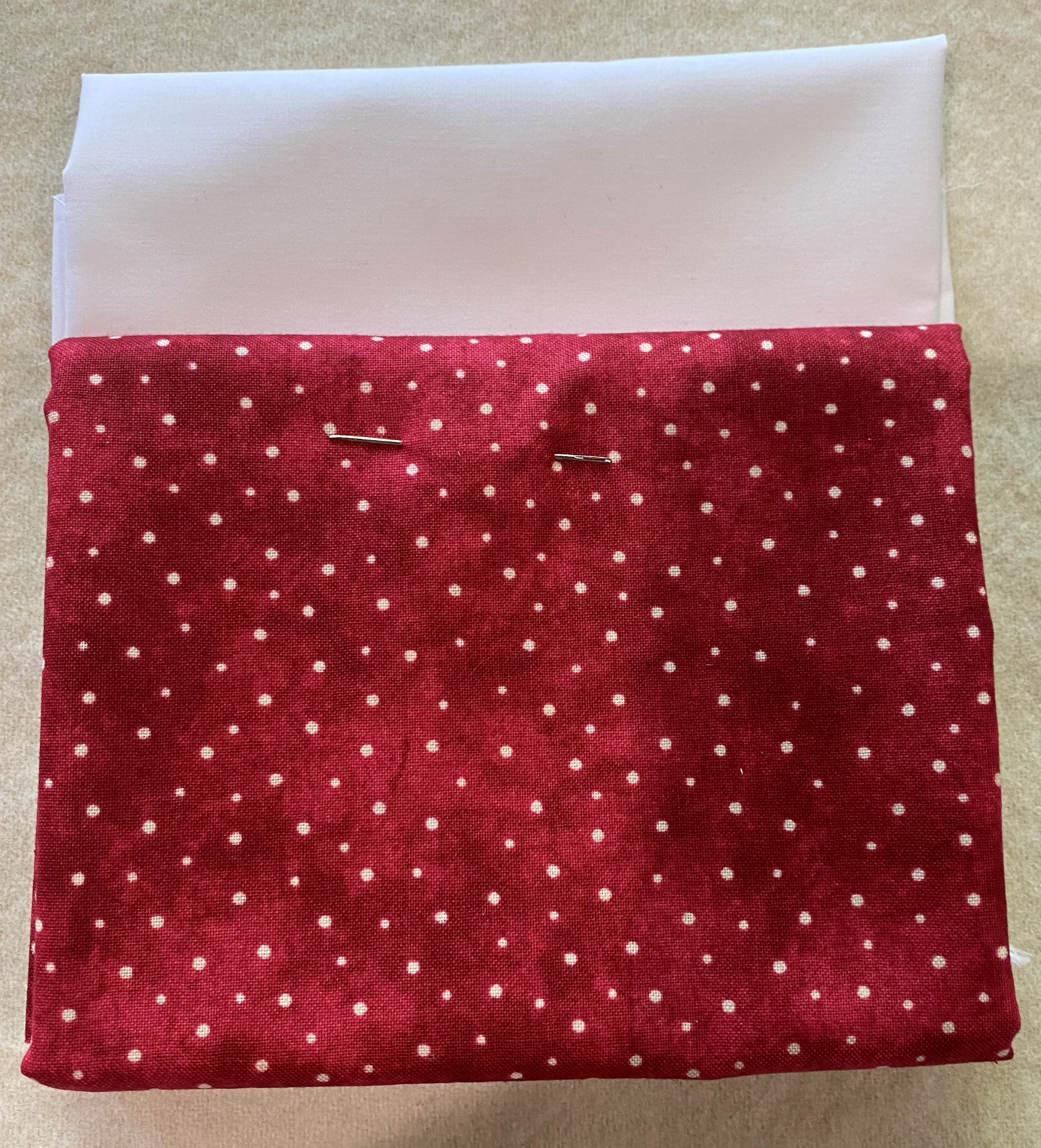 Includes Fat Quarter of White Muslin and 1/2 yard of Red Dot fabrics and Needle.
