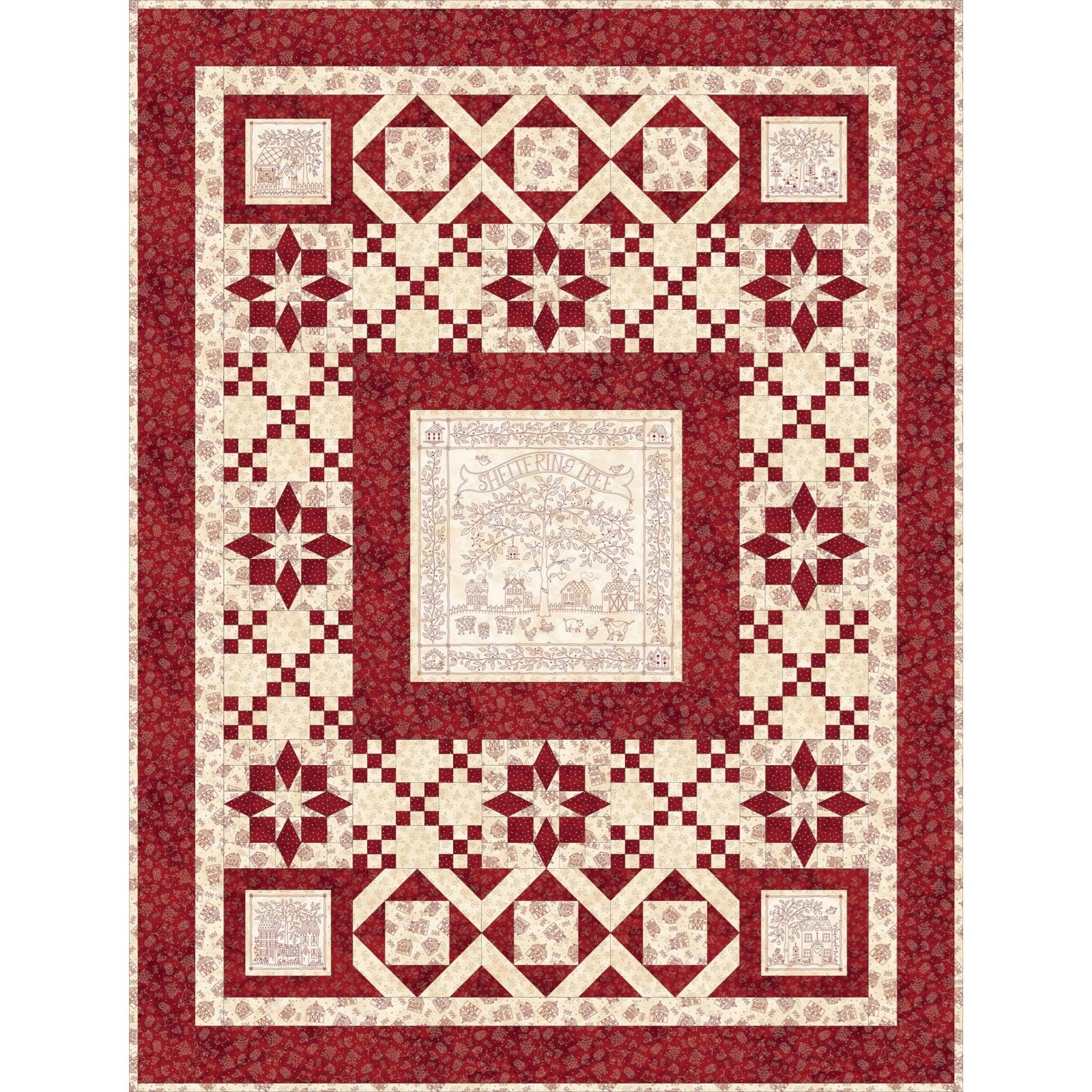 Purchase the Quilt Fabric Kit including the Connecting Home Quilt Top Pattern and get started. Make the delightful "Home" quilt featuring Sheltering Tree Fabric Collection including the Pre-Printed Panel.
