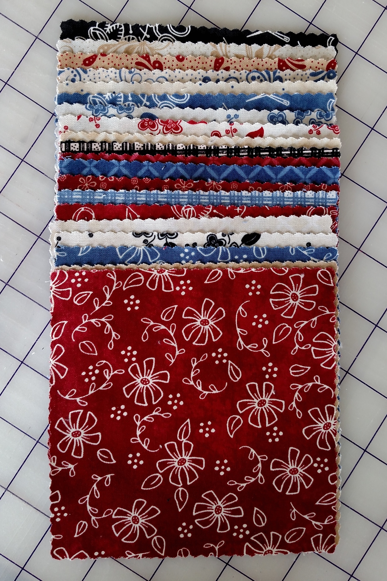 Piece additional Charm Squares to finish the back (7 1/2" x 12") or use another coordinating fabric from your stash.Binding requires 2 lengths of coordinating fabric cut 2" x 42".