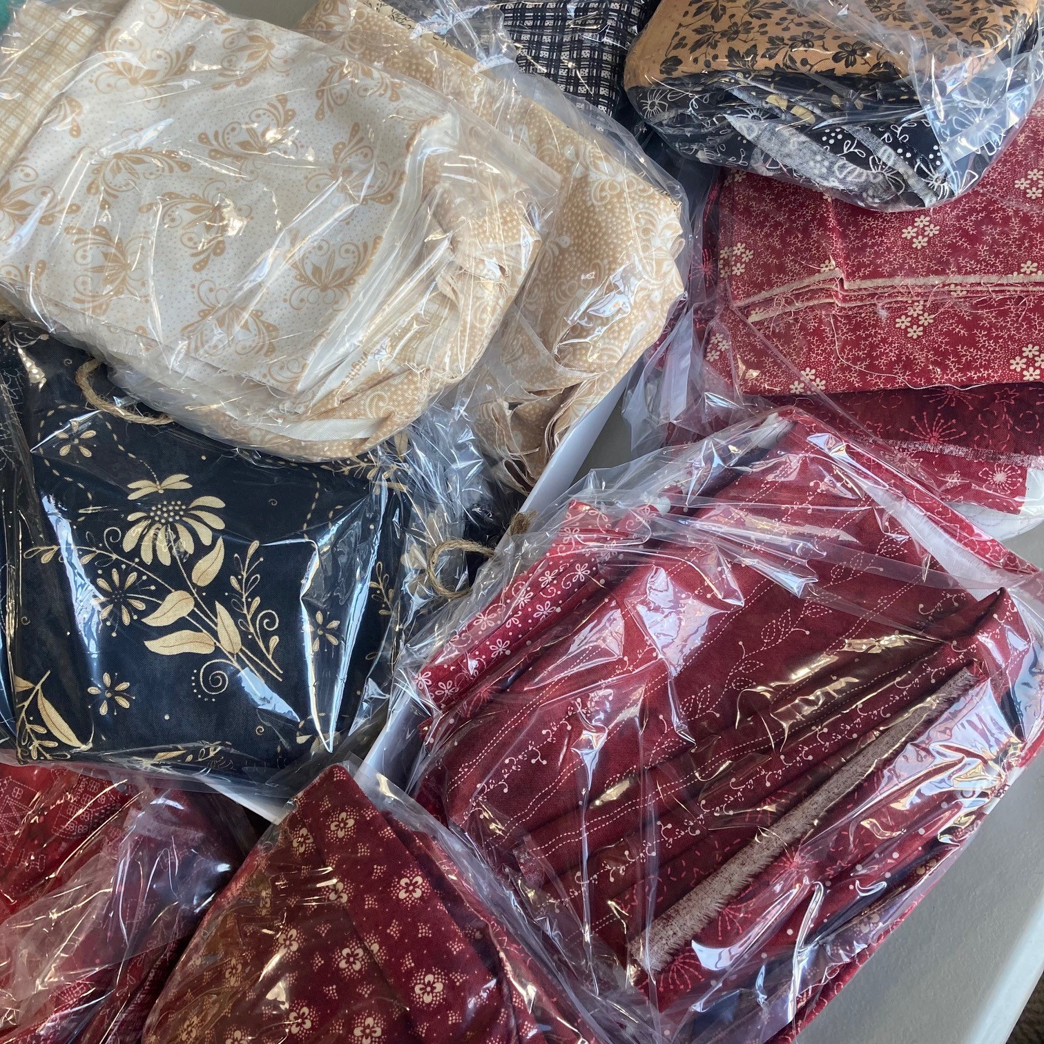 These fabric stash bags range in size from 4" x 22" to 16" x 22" all the way to WOF. They include a mixture of fabric from the following collections: