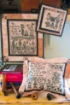 Three BlackWork Designs to Show Off In Your Home....Each Would Make A Lovely House Warming Gift Too! Create Signs, Hangings and Pillows. Select Motifs From The Designs to Create Small Pins, Pin Cushions, Needle Keeps and Other Great Little Treasures. The Black Embroidery on Soft Tan Fabric Makes a Bold and Dramatic Design.