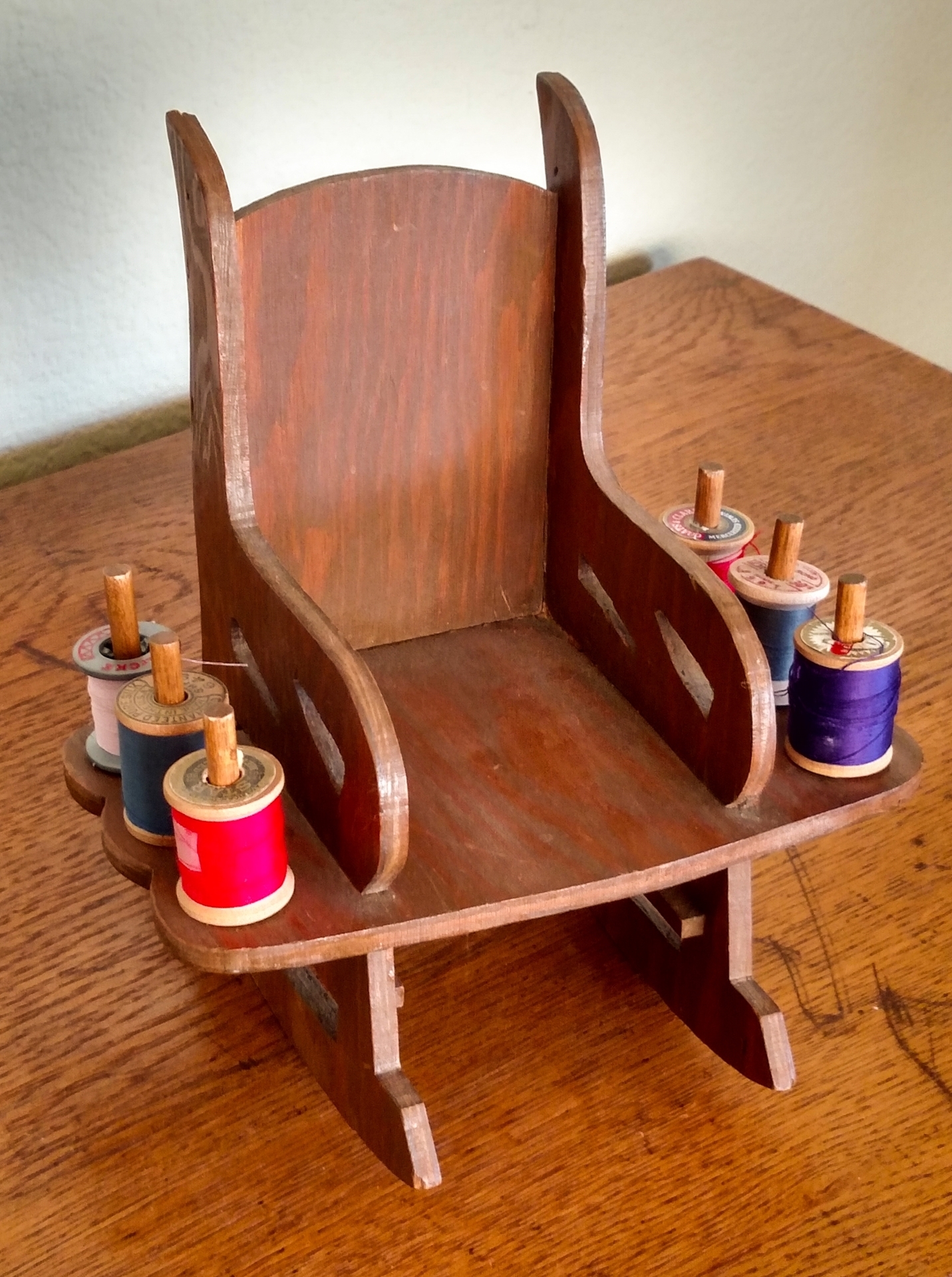 A lovingly hand crafted Rocking Chair Sewing Caddy just waiting for you to make the Pin Cushion pillows in your favorite fabric! So cute and you will have have a great time making back and seat cusions for your pins and needles. A fun conversation piece in your sewing room if you don't actually use it! 8" tall x 8" wide
