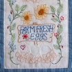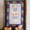 There is nothing like Fresh Eggs right from the Farm! This colorful design will cheer-up You and your kitchen with a warm country flavor.  The chubby hen and her chick are happy in the nest laying all those lovely eggs for you!  Finished with the complementary Temecula Treasures fabric collection.  Enjoy as a hanging or use as a table mat with some of your own real or pretend eggs in a basket.