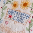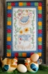 There is nothing like Fresh Eggs right from the Farm! This colorful design will cheer-up You and your kitchen with a warm country flavor. The chubby hen and her chick are happy in the nest laying all those lovely eggs for you! Finished with the complementary Temecula Treasures fabric collection. Enjoy as a hanging or use as a table mat with some of your own real or pretend eggs in a basket.