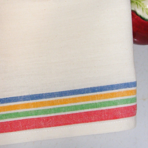 A replica vintage-style tea towel once found in most kitchens from the 1920's through the 1940's. Back then, the homemaker would buy the towelling by the yard and have to cut and hem the sides. This is vintage look towel is hemmed on all 4 sides and is ready to add your embroidery or applique!The four multi-color stripes will complement many kitchens as well as the decorative embroidery you will be adding! A thirsty 100% cotton towel in a generous 18" x 28" size. Remember to machine wash and dry your towels before beginning your embroidery.Stick 'n Stitch is the easiest way to transfer your embroidery design onto tea towels. They are a more coarse and have thicker fabric when compared to muslin and not as easy to see through when you use your light box.