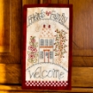 Welcome one and all – Friends and Family – to your home! Hang your colorful Welcome Banner near your door so everyone will see it and feel happy to visit. A limited palette of Perle Cotton colors on tonal ‘Cozy’ Timeworn cotton creates a warm and friendly Welcome. The cute Heart Checked Button echoing the red and cream checked border finishes your Welcome Banner perfectly!