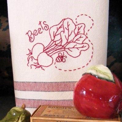 Bright red "Beets" in RedWork to brighten your kitchen. One of a series of 12 Fruits & Veggie designs for the year. Collect all 12 designs, one each month, and decorate your home.