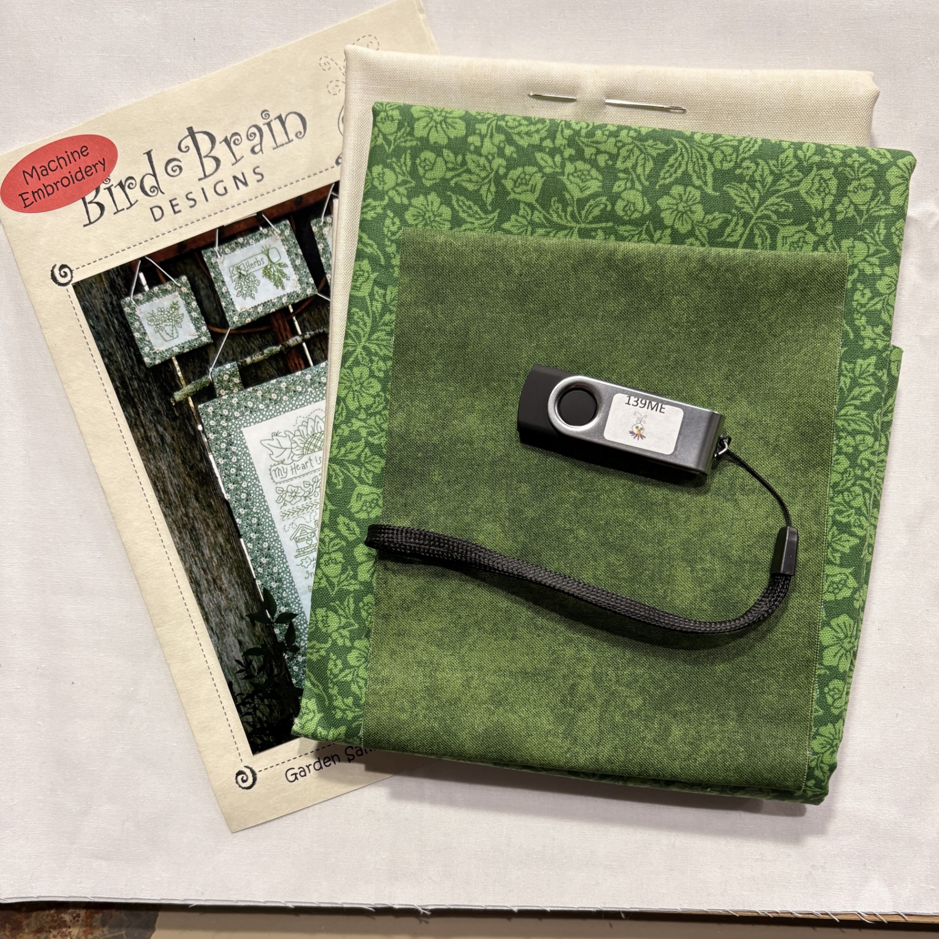 Pattern & InstructionsFeather Down for EmbroideryGreen Floral Print for Borders and BackingGreen Solid for Inner BordersNeedle