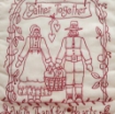 An ‘old world’ Pilgrim couple celebrate their bountiful harvest with a basket of fruit to share. The simplicity of the Thanksgiving scene under an arbor of vines, leaves and berries frame the couple so nicely. Add the verse plus Embroidered Hearts and a tiny Red Heart Button and create a welcome RedWork to add to your Thanksgiving Home Décor!