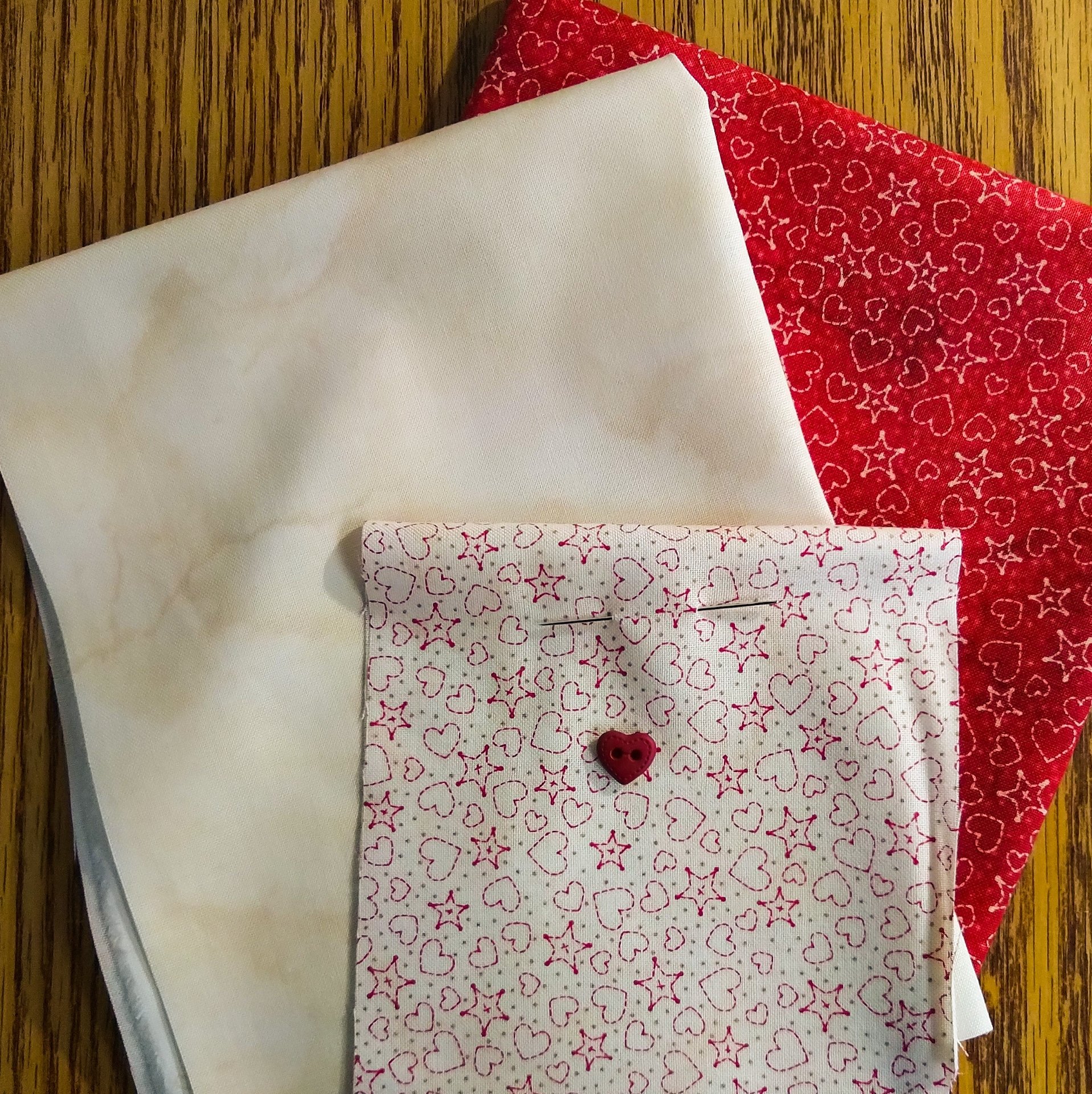 The materials pack includes the ALL the Fabric, Needle and a Red Heart Button needed for your pattern