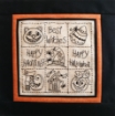 Nine familiar Halloween motifs in a checkerboard setting create a Happy Halloween Pillow to decorate your home for ALL the creepy and scary holiday parties you will have! Lots of Tricks & Treating for a hauntingly good time. Embroidery on the rich Tea-dyed cotton with scattered dots looks terrific with the BlackWork Halloween Greetings and Halloween motifs.