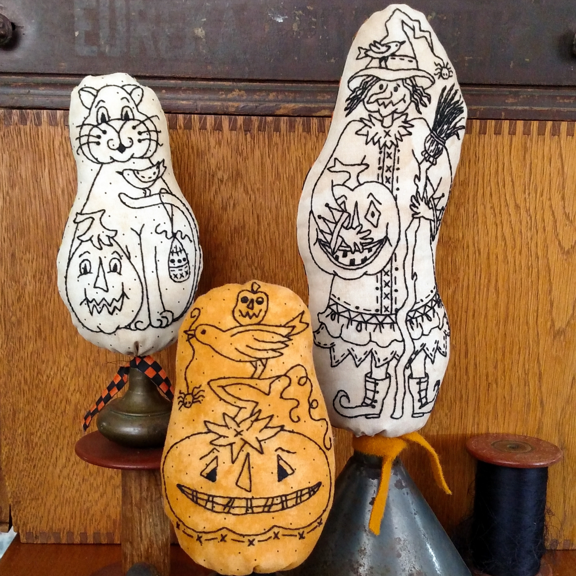Stuffed Embroidery: Witch = 4” x 10 1/2” Pumpkin & Crow = 4” x 6” Cat & Pumpkin = 4” x 6 1/2”