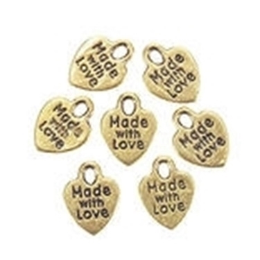 Enjoy making your decorating, gifting, and crafting special with these Gold "Made with Love" Metal Heart Charms.