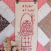 A fun little hanging "Quiltlette Banner" to annouce the fun of Easter.  A BIG egg pops out of a basket stitched in relaxing RedWork.  An amusing little design to welcome Easter.....hang on a door knob just for fun.