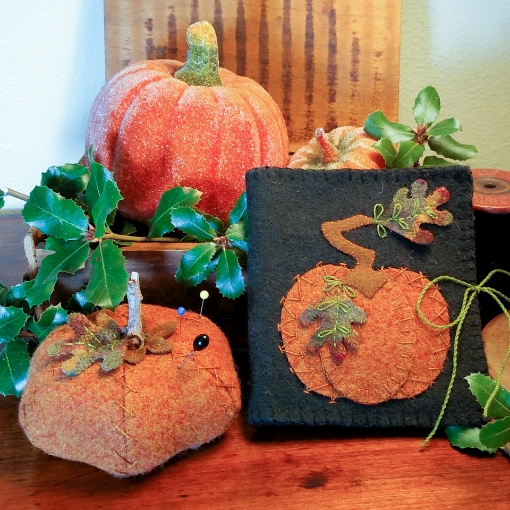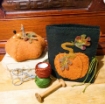 A Plump and shapely Pumpkin creates a terrific Autumm pin cushion. The folded Needle Keep has an Acorn inside for needles plus a handy pocket for your special Embroidery Scissors. The Wool colors are yummy and warm! Brush up on 8 embroidery stitches that help give LOTS of interest and texture to your Sewing Set. These will make a terrific Gift for all your "Woolie Friends".