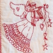 Embroider in cheerful RedWork with Presencia Robin Red choosing #8 on Natural Muslin or tonal “Feather Down” cotton and sashing in a pair of pretty Red and Cream prints.