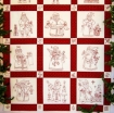 “Here Comes Santa” RedWork quilt will make a terrific RedWork Club project, keeping everyone smiling all through the year – even in summer’s heat. The pattern includes 12 different Santa designs plus a 13th FREE pattern with the 20 cute little cornerstone designs that add so much to the quilt. Finishing instructions are, of course, included with the complete pattern packet. Complete your Santa Quilt with Red Dot fabrics... so cheerful!