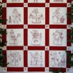 Machine Embroider 12 FUN RedWork Santa Quilt Blocks PLUS 20 small Cornerstone motifs! Make a cozy lap quilt to cuddle under through the winter or hang as a wall quilt to add to your home decorating. Stitch on natural muslin or 'Aged to Perfection' Cozy with Red Dots sashing. Enjoy a Merry Christmas!