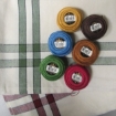 DMC #8 Perle Cotton Used: 322 Blue, 780 Dark Gold, 783 Gold, 938 Dark Brown, 3346 Green.Presencia #8 Perle Cotton Used: 1915 Robin Red