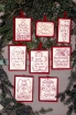 A fun collection of RedWork holiday sentiments to add some FUN to your holiday decorations. Hang on your tree, add to a special package or string on a ribbon to decorate your mantle. RedWork is so quick and easy to stitch up for the holiday!Trace the ornaments designs directly onto the muslin with a FriXion Pen.If you DO NOT like to trace, use Stick 'n Stitch. Print the ALL ornament designs on the Stick 'n Stitch. Pull the printed film off the paper and finger press onto your muslin. Add your hoop and get stitching in just minutes - super stuff!Set of 8 - 4" x 4" to 4" x 6"