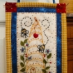 Fat Bees buzz around their tall and stately Bee Skep Home on a hill with Flowers growing nearby. Hanging from the top of the hive is a Red Heart Button adding extra interest to your Embroidered Mini. Use Robin's NEW Summertime Fabric Collection as sashing for your Home Honey Home.