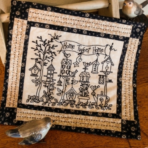 Every “Birdie” love his Home Tweet Home! A BlackWork condo community with a variety of charming bird houses and birds. Make your design into an Embroidered Mat for your home decorating or get clever and stuff for cheerful pillow for a special chair!