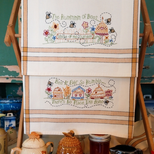 We have Gold Stripe Towels to embroider on as shown in our Bee photos!