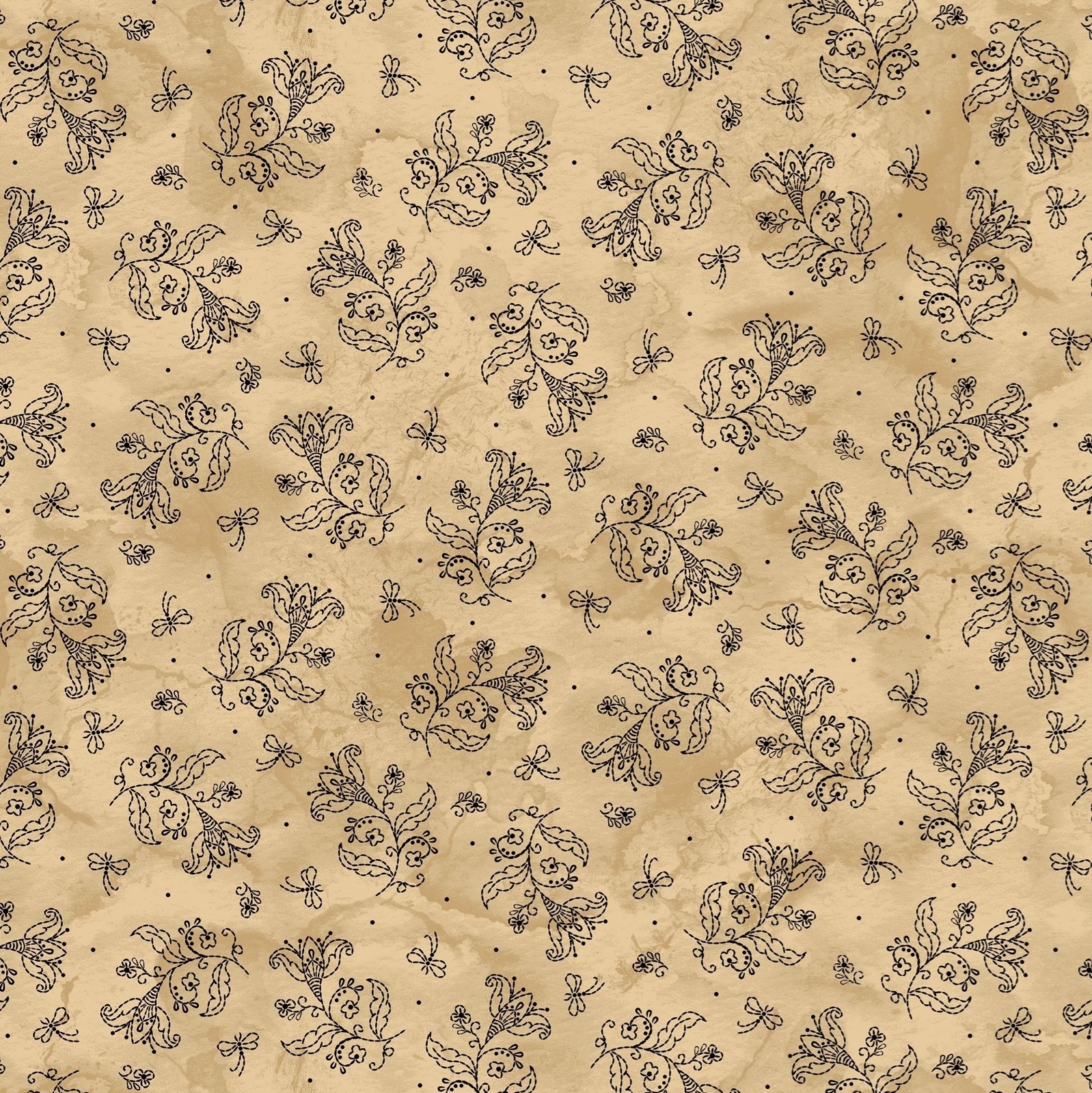 Pretty curvy Jacobean-style floral print with scattered Dragonflies and small flowers. Great medium sized print for finishing Embroidery and Quilts.....especially Garden Designs!
