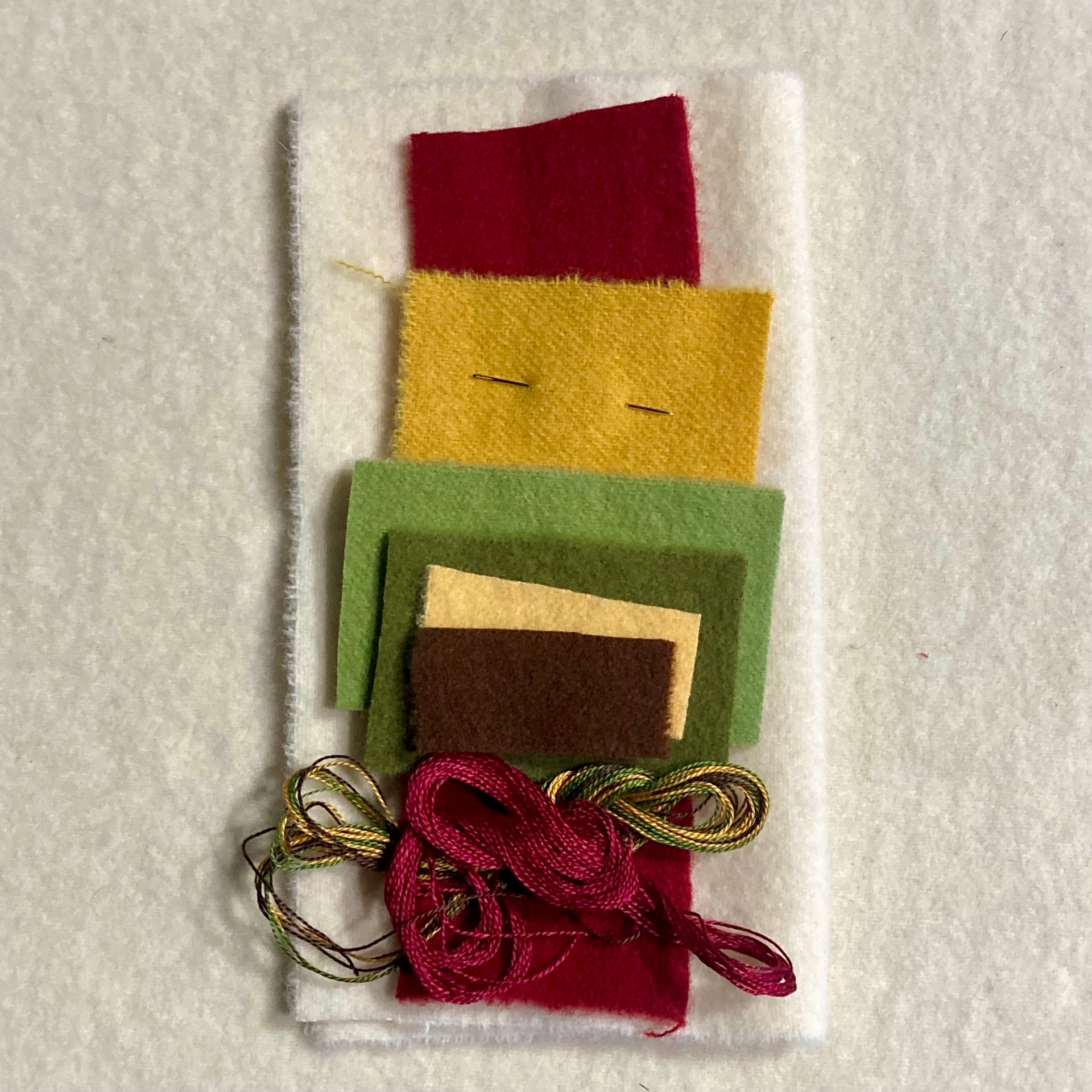 The materials pack includes the ALL the felted wool, Perle cotton and a needle needed for your pin cushion