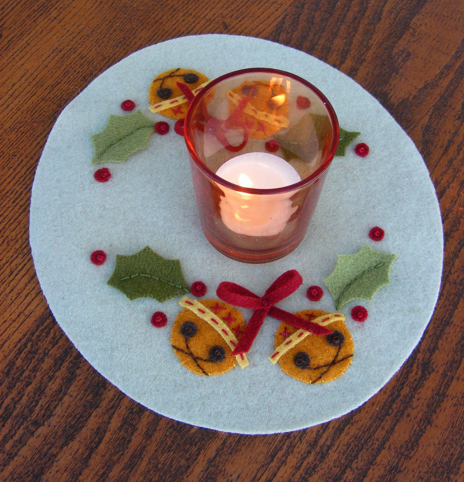 Decorate your table with a really QUICK and EASY to make Candle Mat. Celebrate the jolly-holly holiday time with colorful jingle bells and holly all set off with bright red berries and bows.