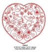 Delicate RedWork Flowers and Vines surround a pair of “love birds”. A lovely embroidered design for a sweet Valentine’s Day. Your heart will make a perfect Gift for someone Special to remember on Valentine’s Day! An easy and effective finish of concentric rows of various Red & Cream cottons to frame your pretty heart.