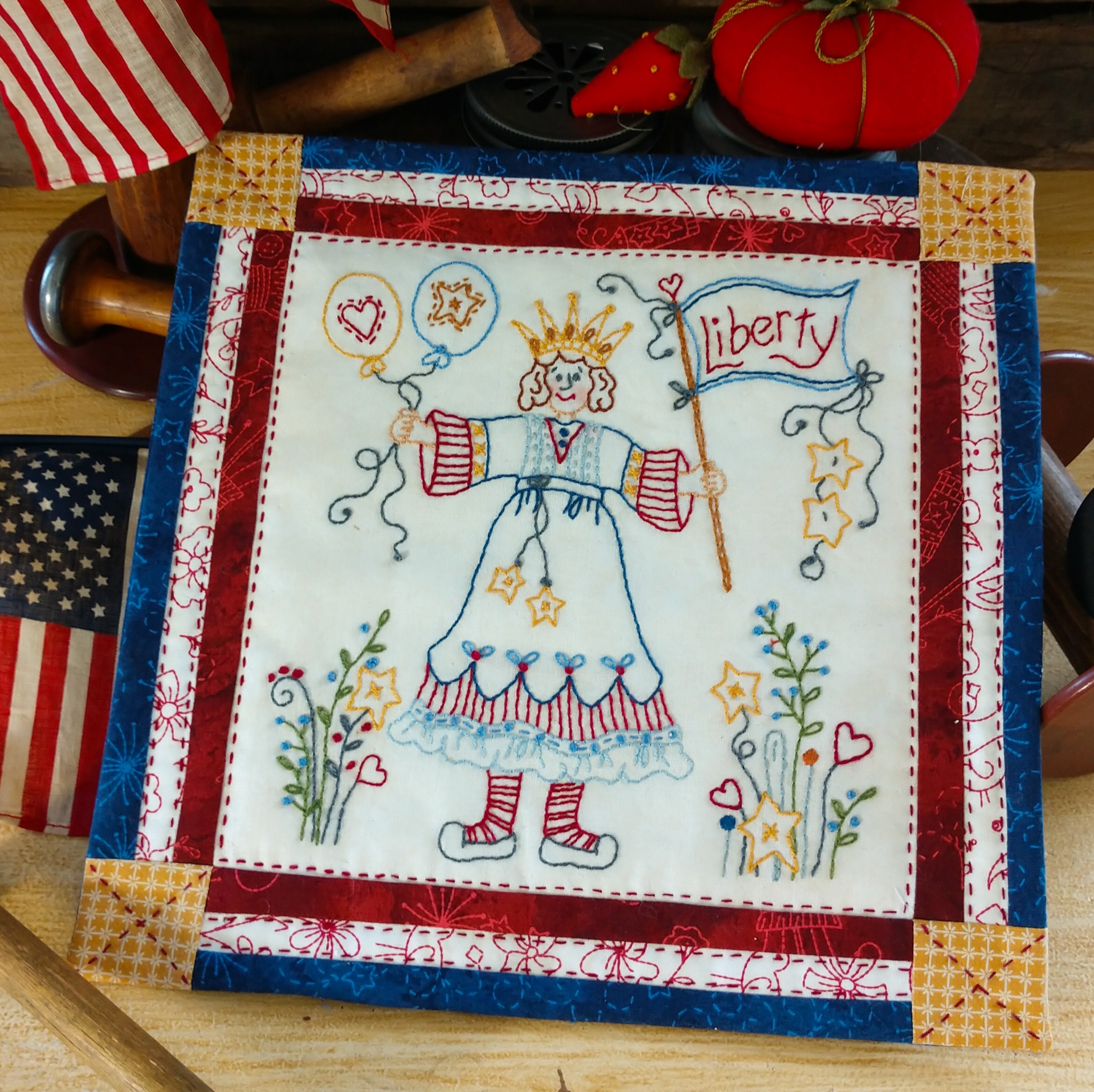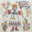 Bright and cheerful in colorful Embroidery complete with holiday balloons and a special flag with stars. This little Miss will make everyone happy at your Special Holiday Parties!