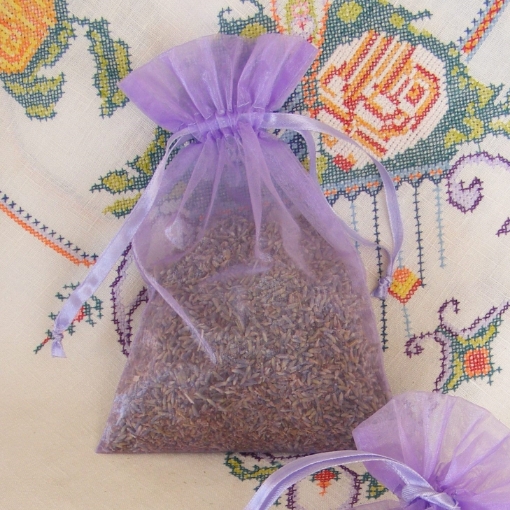A lovely, sweet scented bag of French Lavender Buds. The Lavender comes in a pretty silky gauze bag......sure to make a welcome gift! Wonderful to keep a drawer or closet sweet smelling all the time.Lavender bag = 5" x 7"Approximately = 2.5 oz.