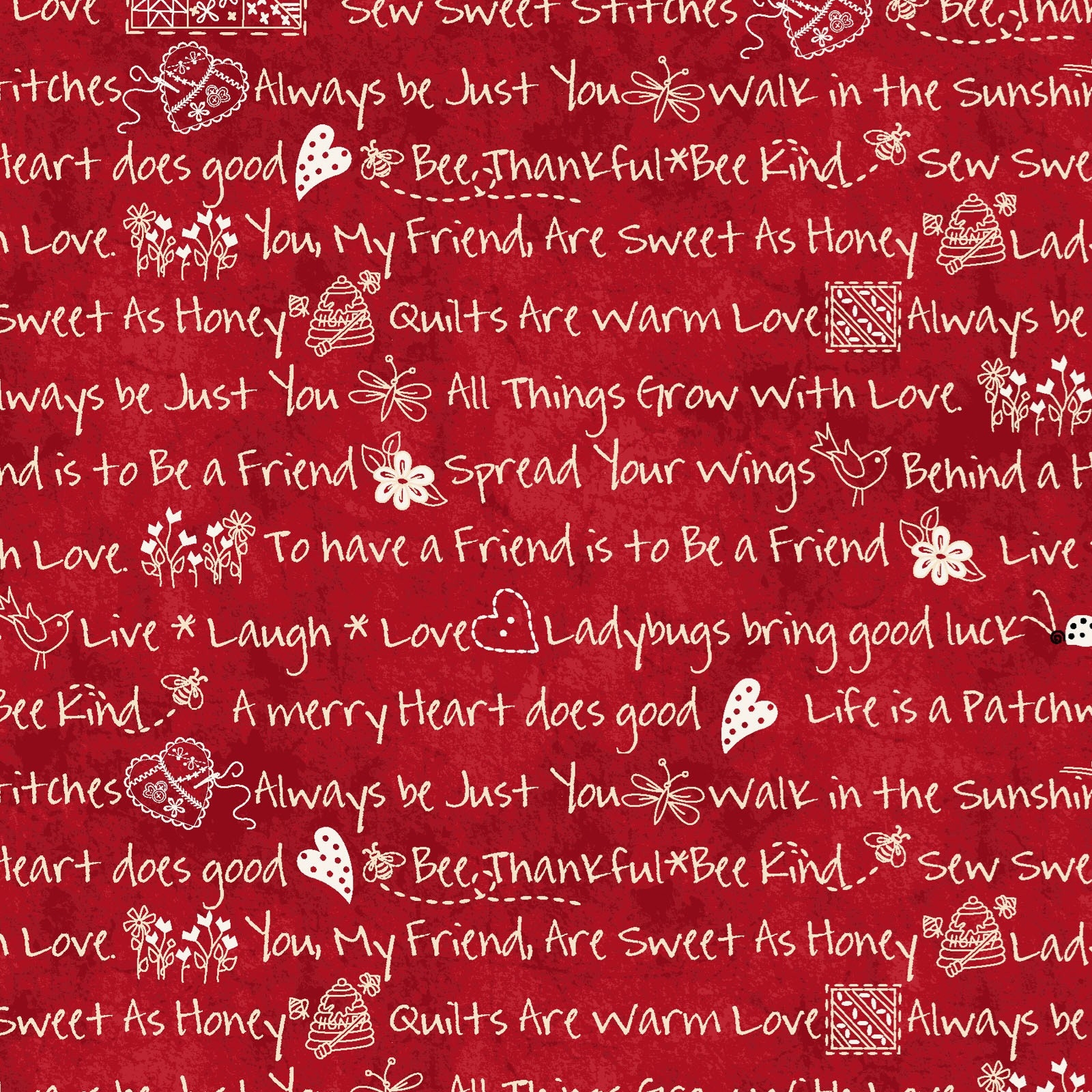 Little Sentiments on a Red Background of 100% Cotton Fabric