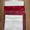 1 1/2 yard Natural Muslin for embroidery blocks and 1 1/2 yard more for quilt back.Fabric A (white dots on red background) = 3/4 yard.Fabric B: (red dots on white background) = 1/3 yardFabric C: (red and white floral) = 1 1/4 yard